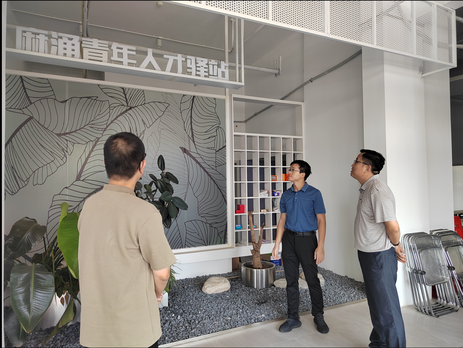 参访活动在麻涌镇团委书记李鹏飞的热情接待下展开。学院参访人员首先参观了麻涌镇青年人才驿站的简介墙、文化墙及各功能室,详细了解了驿站的运营模式、服务项目以及在凝聚、服务青年方面取得的成效。