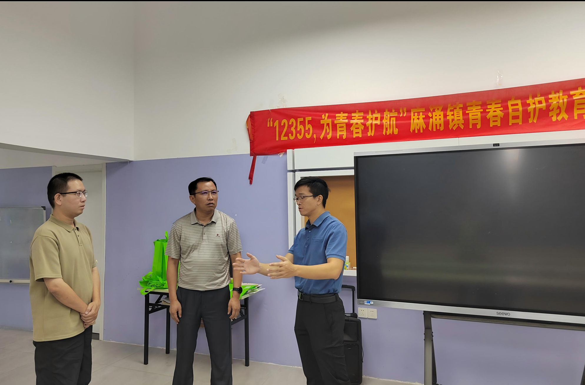 随后,双方举行了座谈交流会。座谈会上,麻涌镇团委书记李鹏飞介绍了麻涌镇青少年服务的总体情况、青年人才驿站的功能定位以及“12355”青少年服务热线等平台的建设成果。他表示,随着青少年服务需求的日益多元化,迫切需要高校专业力量的注入,期待与广州新华学院在青少年事务社工培养、社区服务项目创新等方面开展务实合作。
