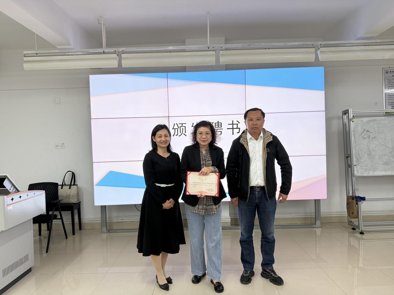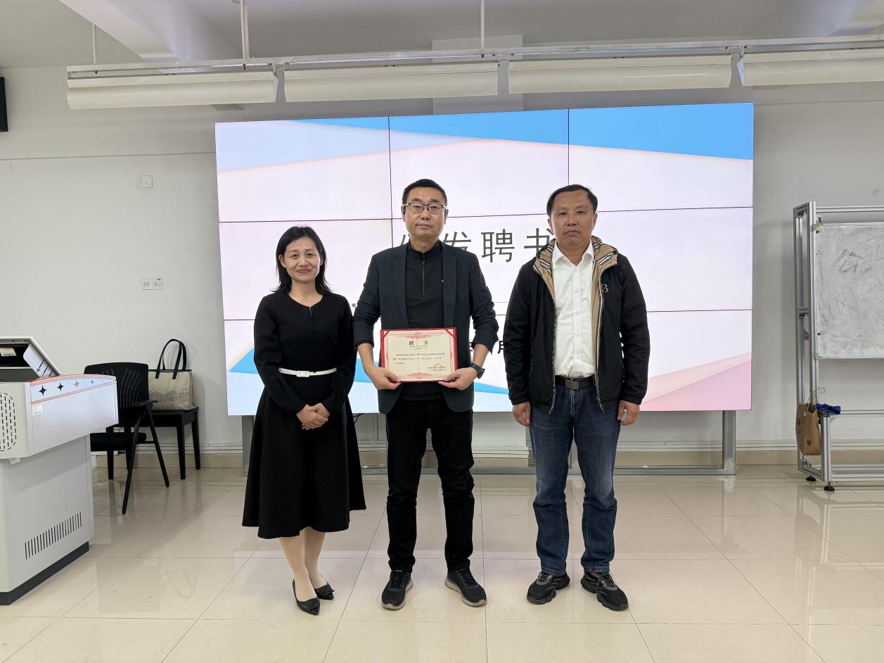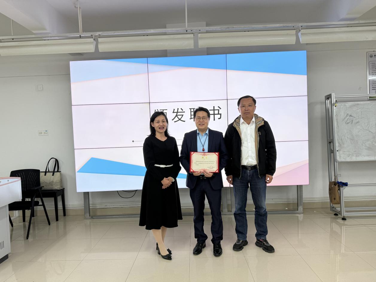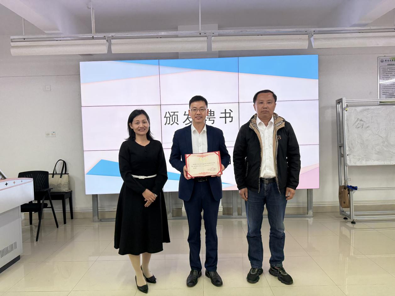 罗亮梅副院长(主持工作)和党总支书记王光辉分别为邱军涛、初勇钢、曹小柏、谢凯航颁发聘书