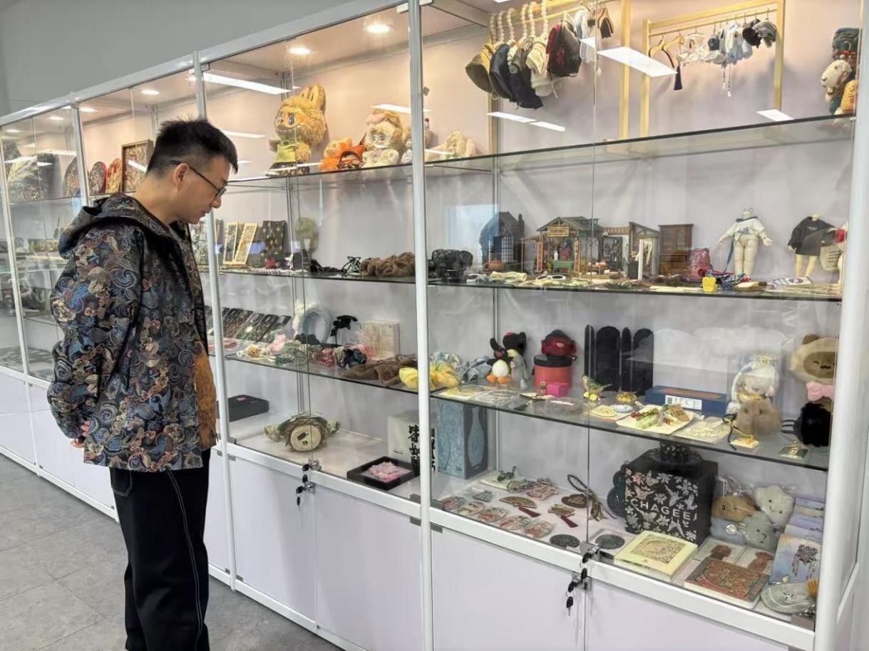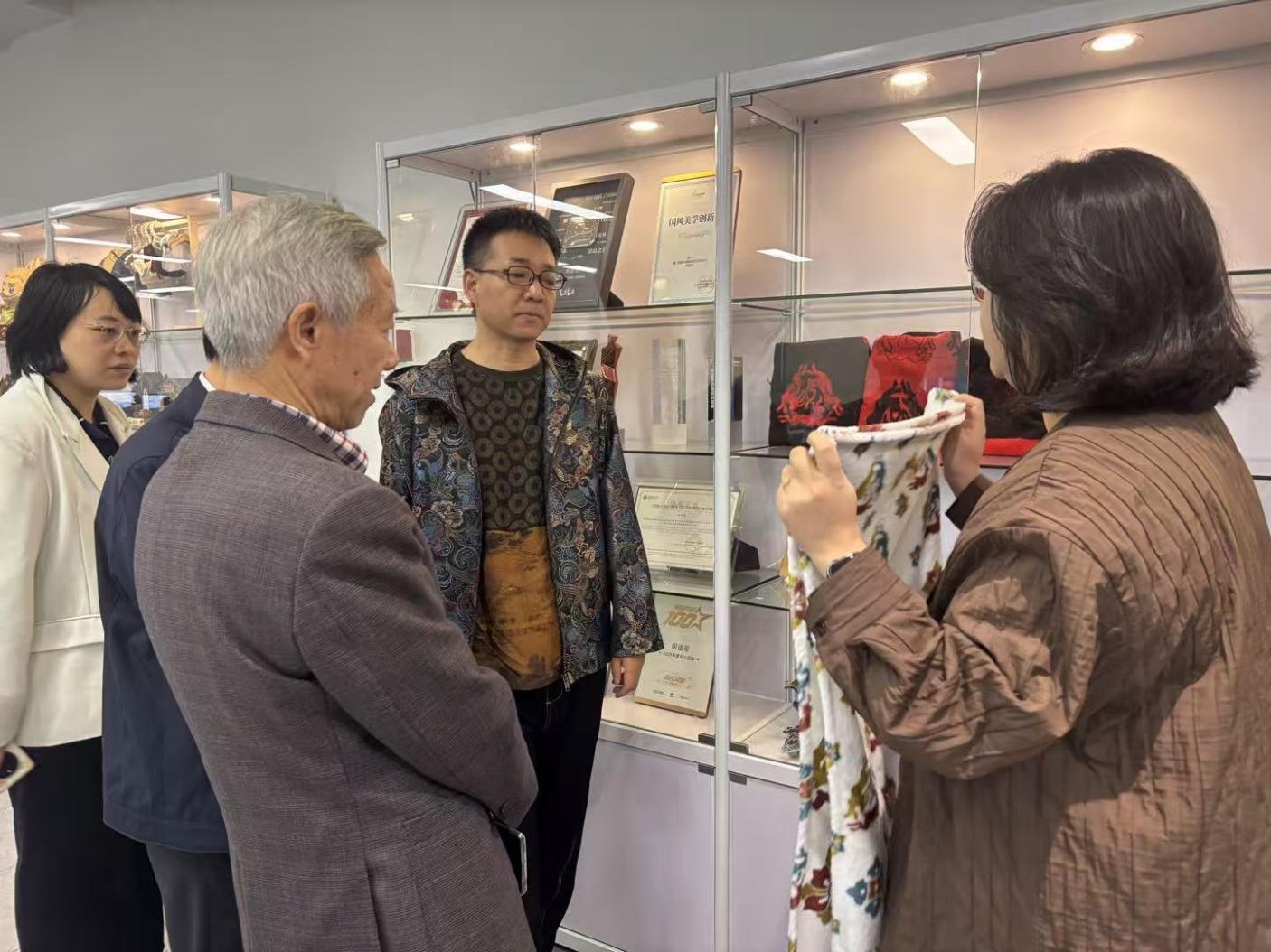 图:教师团队与校友张泷颐在“织造司”公司产品陈列区