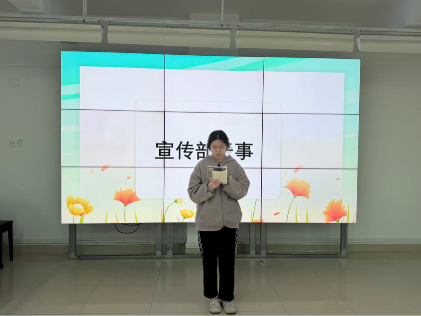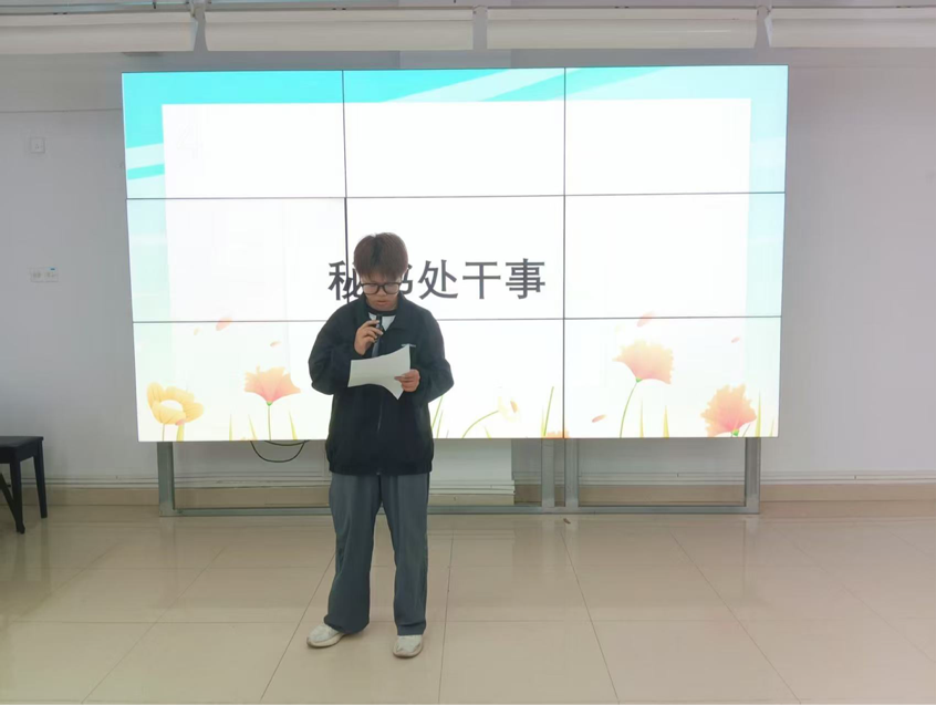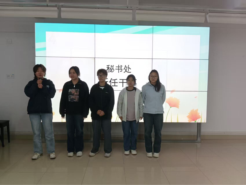 各部门的新干事们轮番进行了自我介绍,台上的他们充满着青涩、朝气,也对未来充满信心、憧憬。