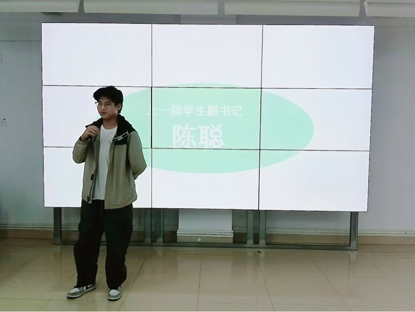 上一任院团委学生副书记陈聪首先向指导老师以及并肩作战的团干们致以最诚挚的感谢。同时,他对院团委的发展提出了希望,他希望新任的团干履行职责,积极交流,加强合作,共同营造一个和谐的大家庭!