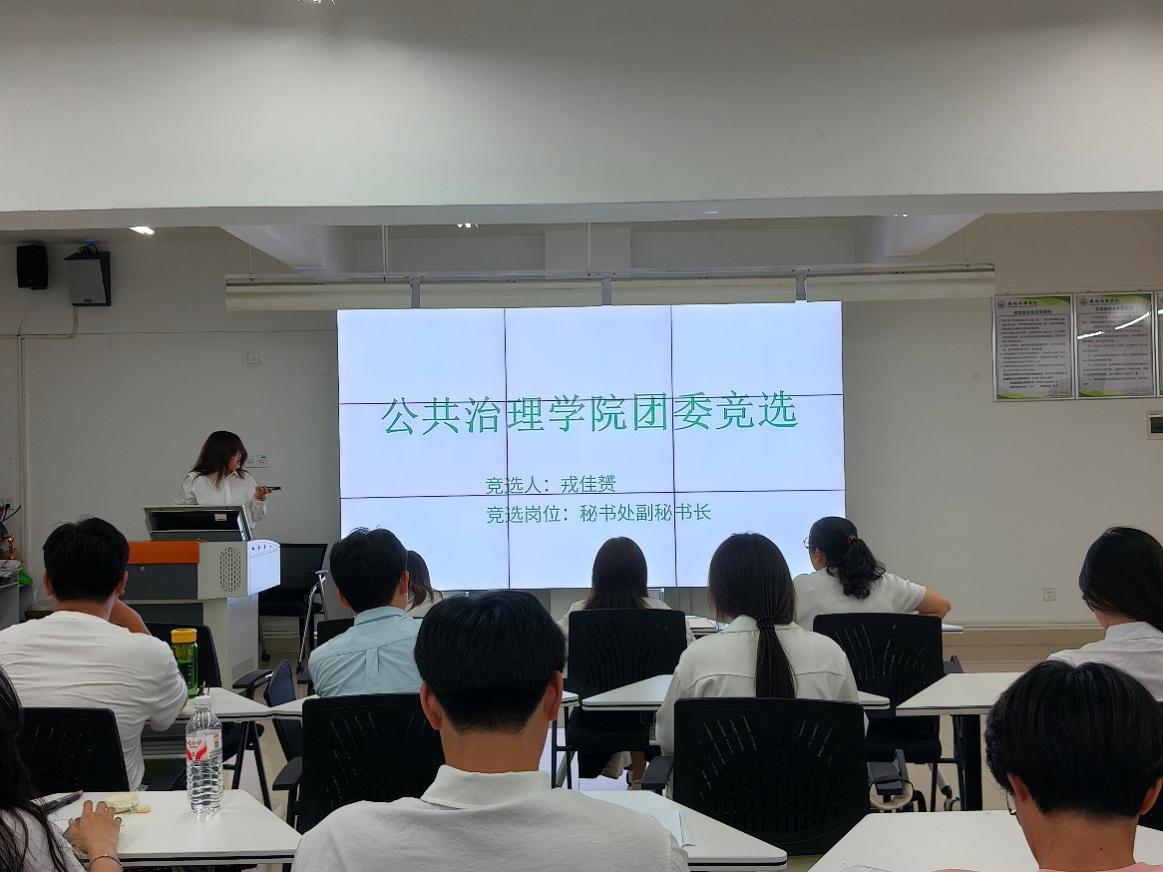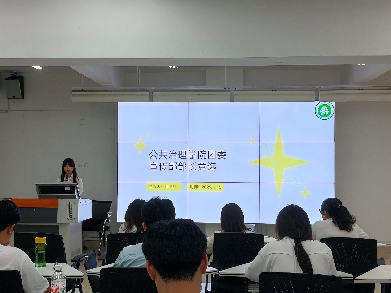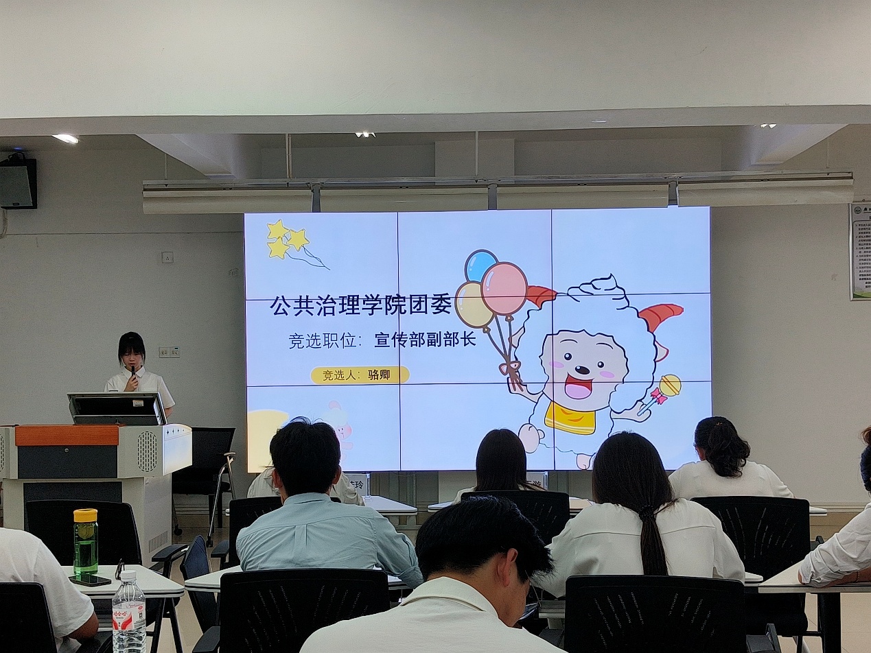 薪火相传守初心,接力奋进启新程。2025年10月15日,公共治理学院团委在格物楼2B606举行干部换任大会,为组织传承注入新力量。学院党总支副书记刘玉漩老师、学生会秘书长陈红莲老师、辅导员肖芳玲老师、上一任团委干部、新一任候选人共同参会,大会由李明栩、陈广超主持。