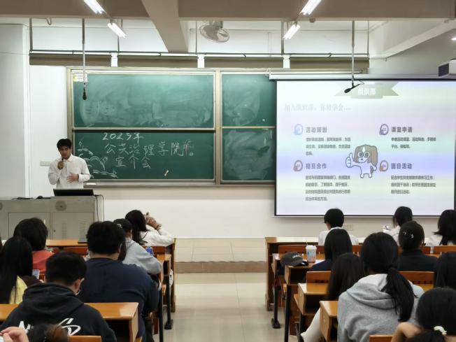 为助力公共治理学院团学组织招新工作的顺利开展,帮助大一新生们更清楚详细地了解学院团学组织的相关情况,公共治理学院于10月22日19:00在定静2A302召开了2025年团学组织宣介会。