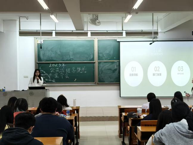 在宣介会上,现任团委学生副书记莱心源为新生们详细介绍公共治理学院团委的组织架构;紧接着四个部门负责人分别介绍所属部门的工作内容、部门性质以及在未来一年里会掌握到的一些技能,帮助他们更好地了解公共治理学院团委这个大家庭。